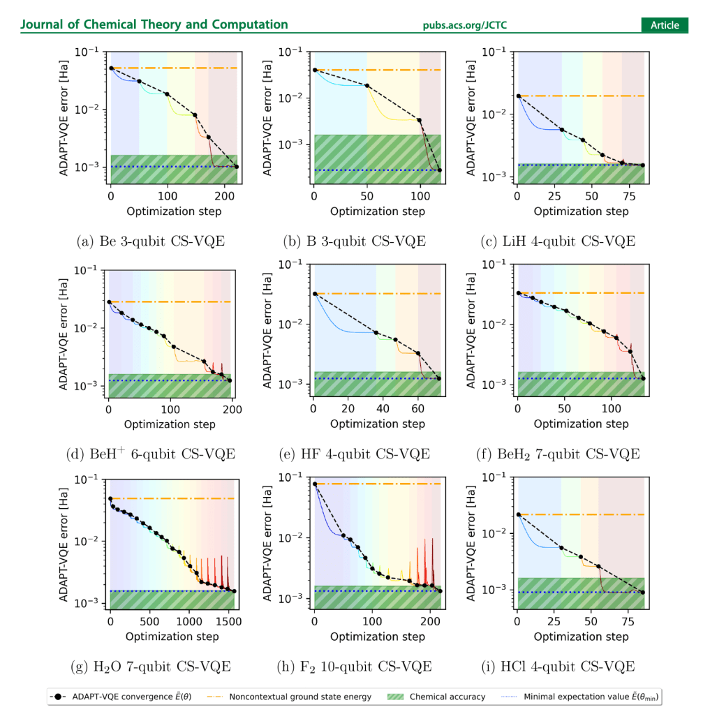 Benchmarking noisy intermediate scale quantum error mitigation strategies for ground state preparation of the HCl molecule.